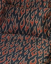 Sin in Linen Fire of Desire Duvet Cover, 100% Cotton Sateen , 300 Thread Count, King Fire of Desire Like a vintage hot rod drag racing through your bedroom, these brilliant red and yellow flames on these black sheets are fast, dangerous, and head-turning. Start your engines and get ready to burn some rubber.